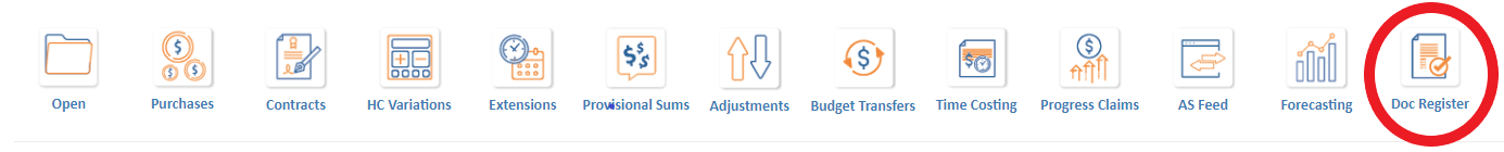 Go to the Jobs List page and highlight the relevant job. Click on the ‘Doc Register’ icon.