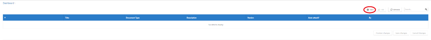 Select the NEW button. Fill in the details on this page and SAVE. Create as many types as necessary. Please remember that the Document Type Code needs to be created without spaces, whereas the Document Type Description can have spaces.