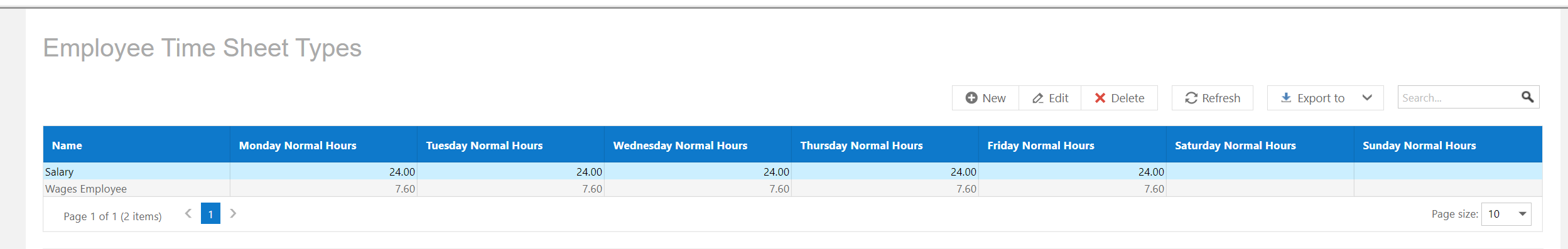 - Next function is to set up the different types of Employees. This is done from the System/List/Employee Timesheet types. For example, you may have different types of staff – wages, salaried, casual staff. This is where the system knows how to allocate the hours and what costs need to be allocated when pulled in from the mobile Timesheet App.