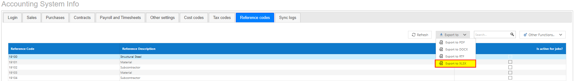 A Buildlogic admin user can export the reference codes from System > Lists > Reference Codes - Above the table you'll notice an 'Export To' menu. Open this and export to XLSX. Remove all the header lines, I.e. 'Preliminaries' heading for example, you just want the description codes.