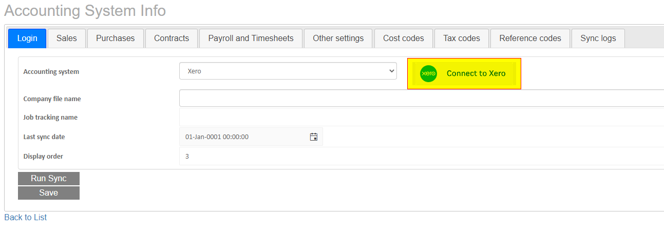 Open the accounting system drop down menu and select Xero, you will be presented with a connect to Xero button enabling you to connect Buildlogic to your Xero company file. Fill out the login credentials using your Xero Administrator account signin and password.