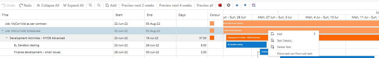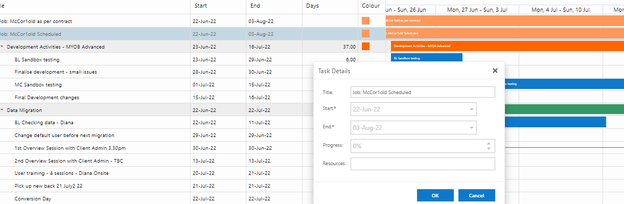Please note, this function can only be used once and once a Gantt chart has some tasks, this option will disappear from the job edit page.