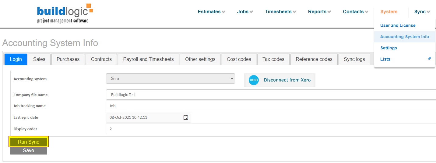 P.S. You won't get a message to indicate when the sync has finished, this can be confirmed by having a Buildlogic admin user check the sync logs of a corresponding accounting system file. (System > accounting system info > Edit > Sync logs tab)