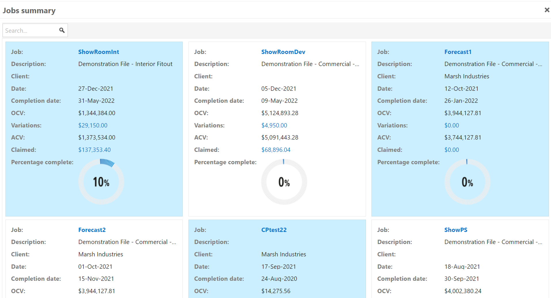 Notice from this widget, the Job, variations and claimed information are hyperlinks. You can click on any of these hyperlinks and you are taken directly to that function for the job.