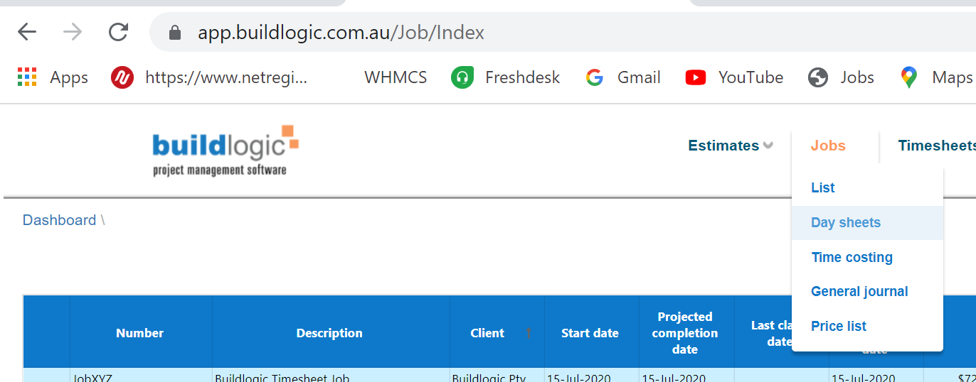 If yes, please decide how many users are required to use Day Sheets and contact Buildlogic at sales@buildlogic.com.au with the number of users who require this access. This is an add-on to the main Buildlogic application. The monthly fee per user is $20.00 plus gst per web user. This will be added to your monthly invoice.