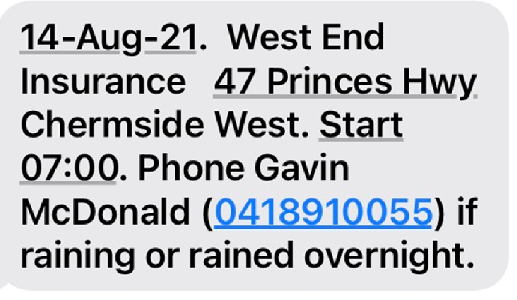 Note: If you use a Labour Hire company, the Email can group all the names for that company into one email to the labour hire company. SMS is the preferred method.