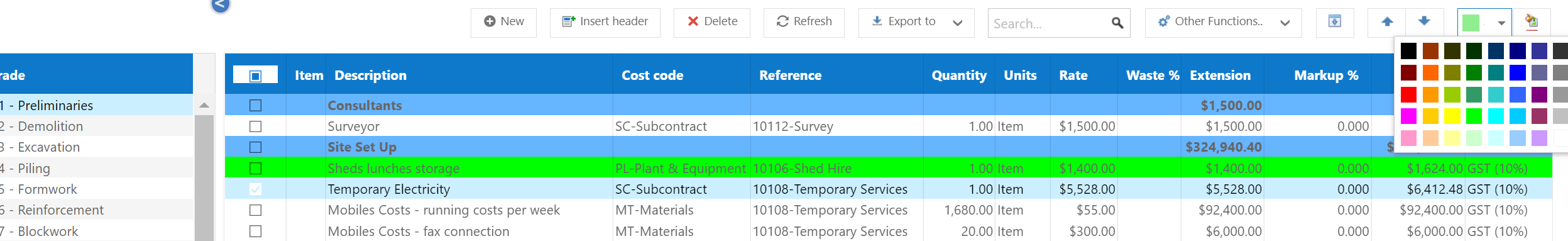 2. Estimating - Estimate Detail Line Colours - When working in an Estimate, you now have the ability to highlight lines with a different colour. There is a new colour selection box at the top right.