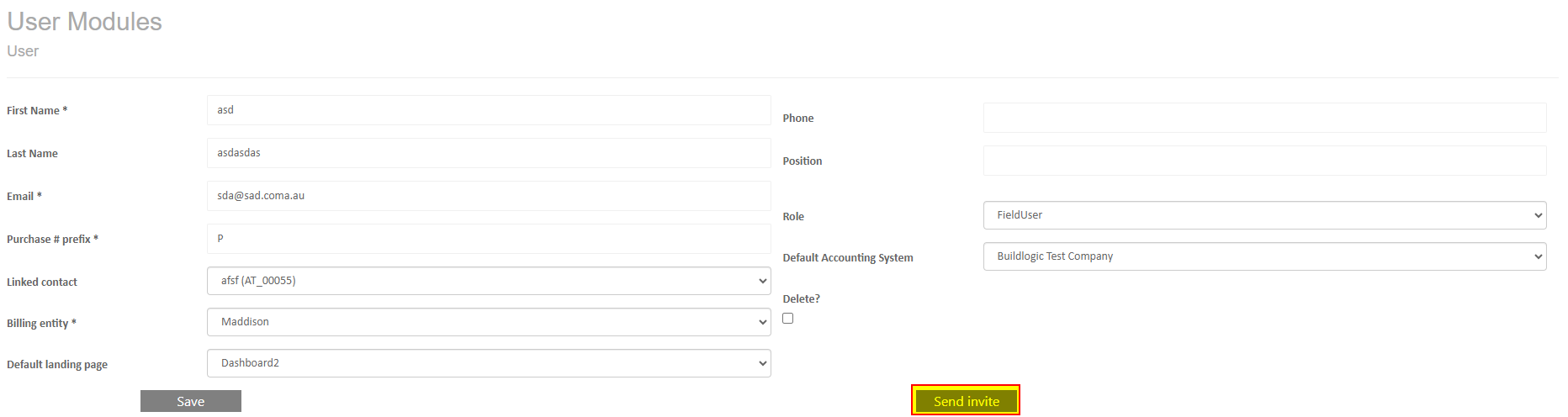 Hitting the send invite button will send an email to the user containing their default password to log in